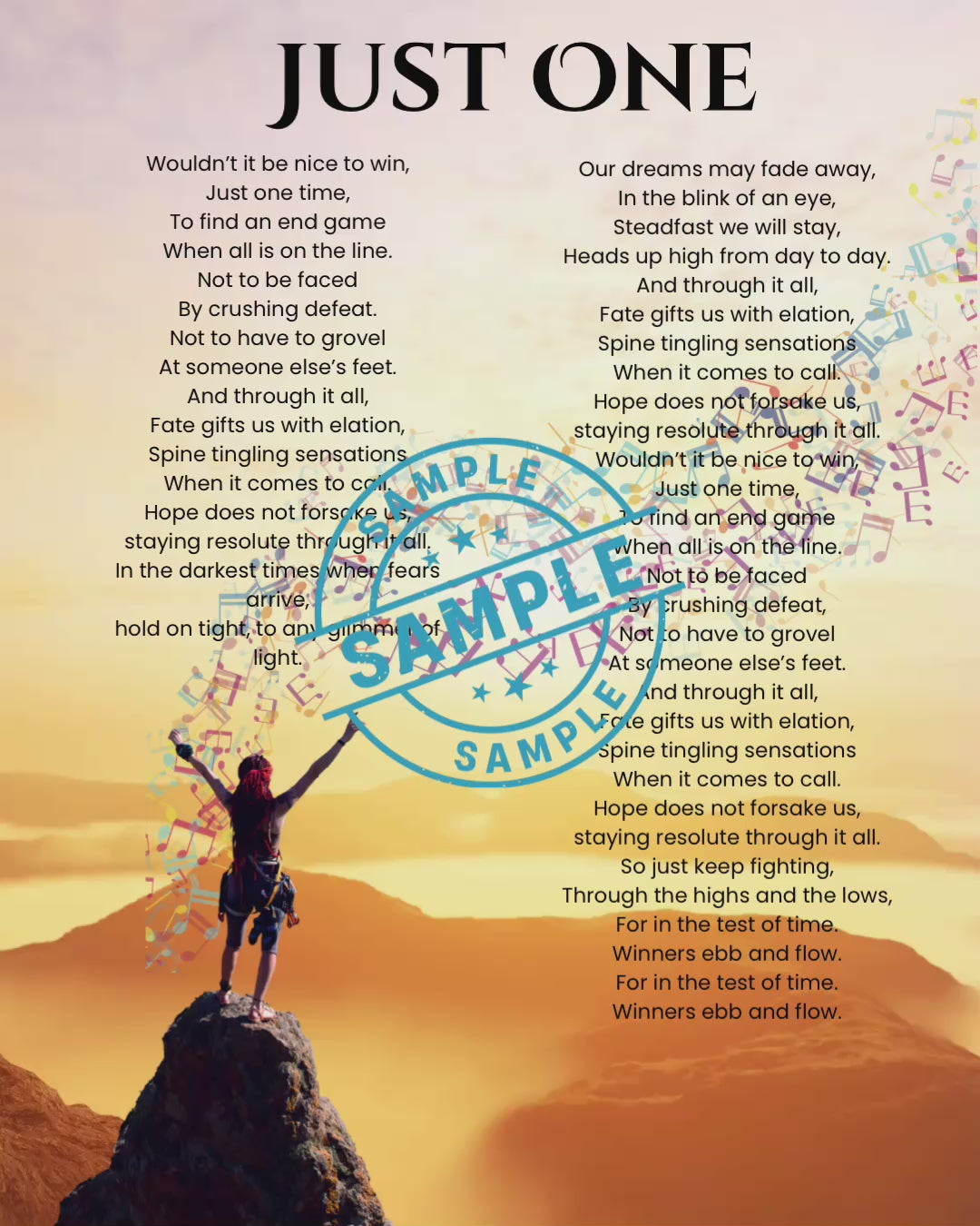 A song that captures the sentiment of the elusive nature of winning despite our efforts and the desire to experience victory at least once.